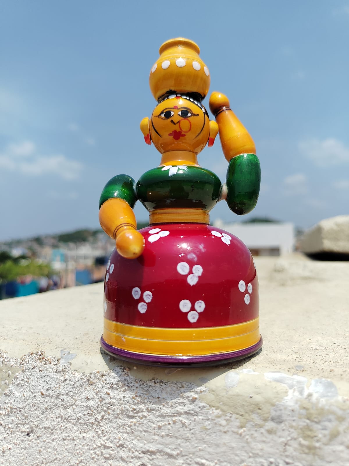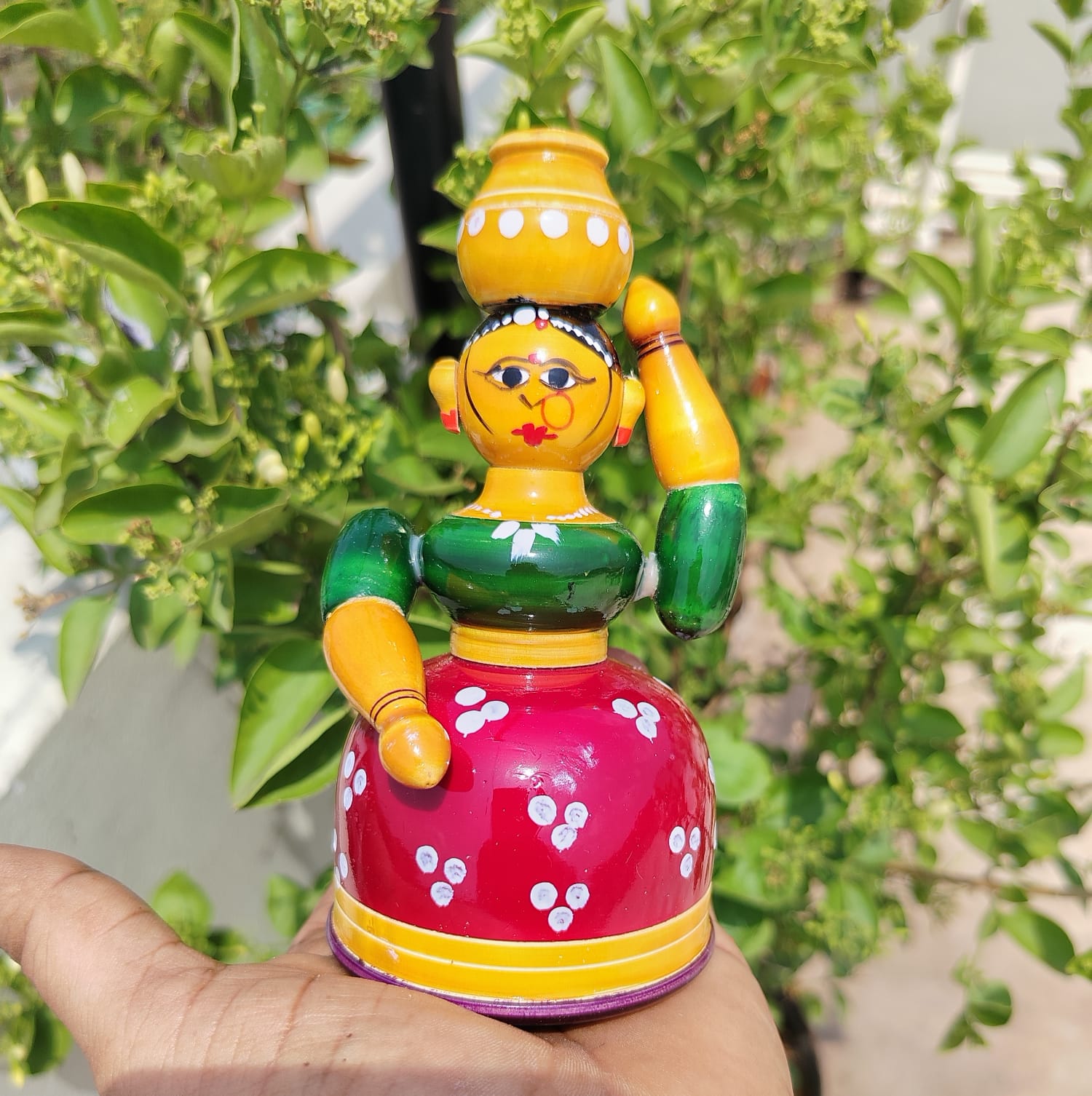 Butta Bomma isn’t just cute — she’s a miniature form of India’s rural heritage. From her saree to the pot on her head, every detail reflects authentic South Indian village life, handcrafted by local artisans