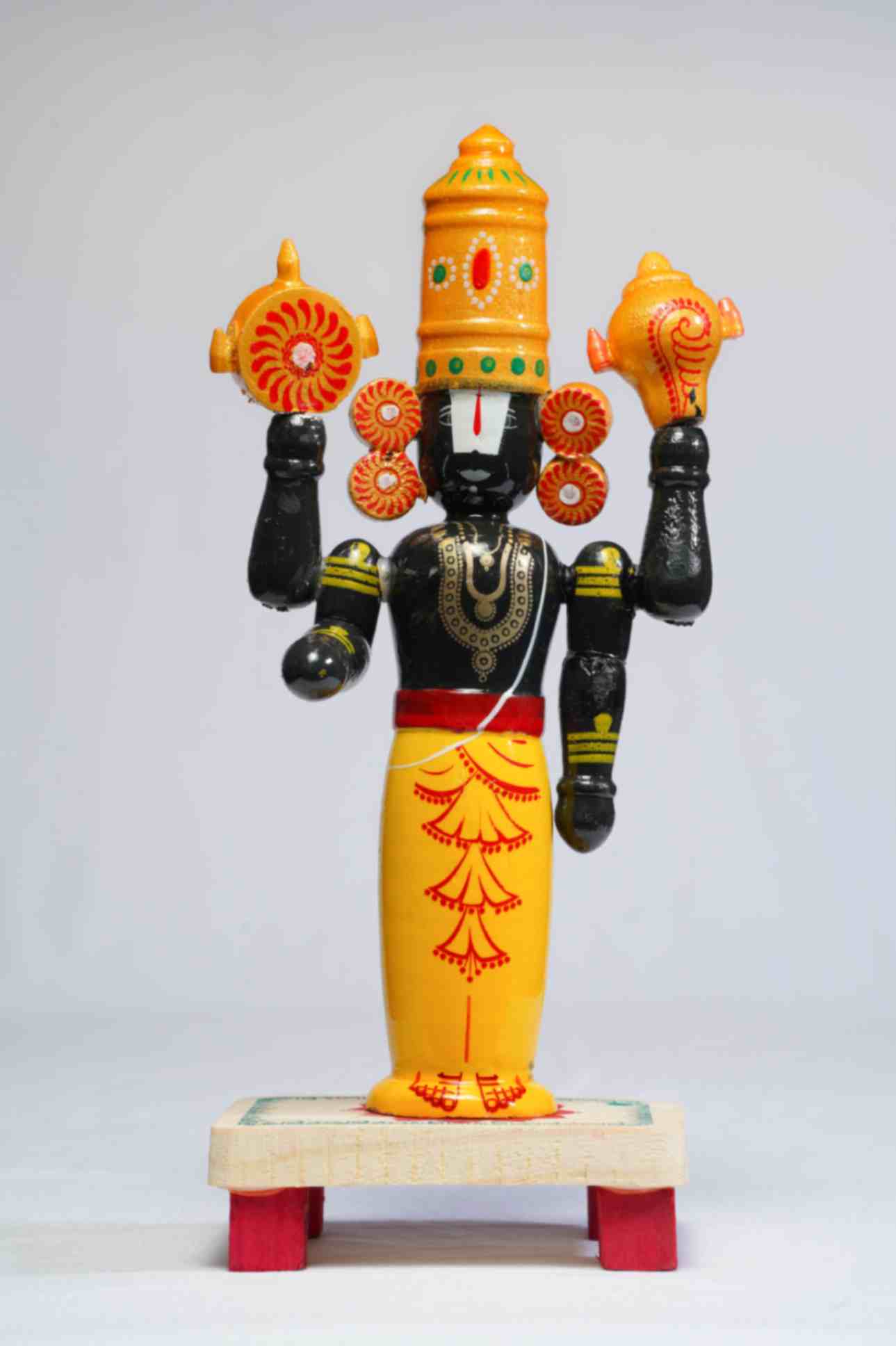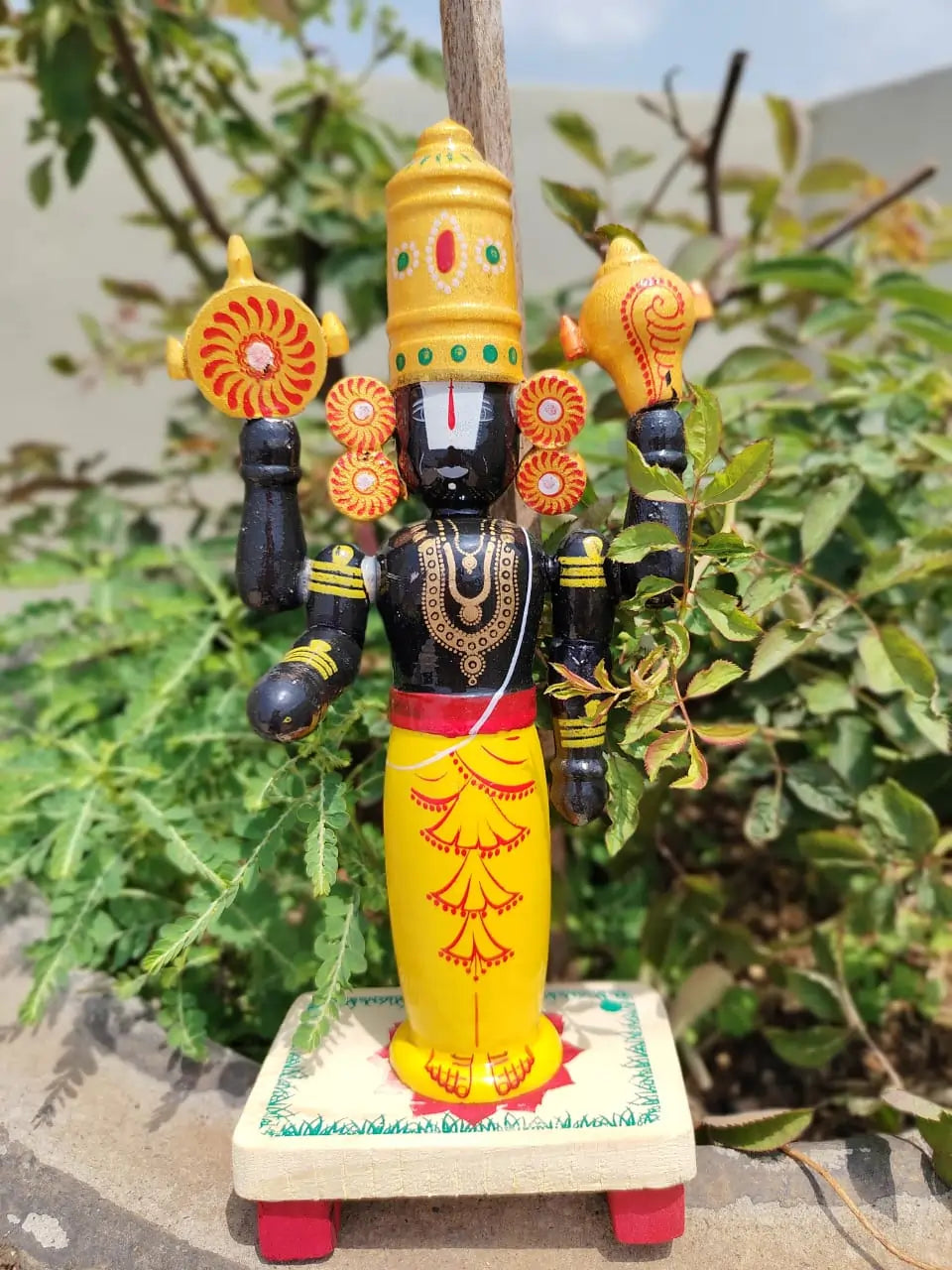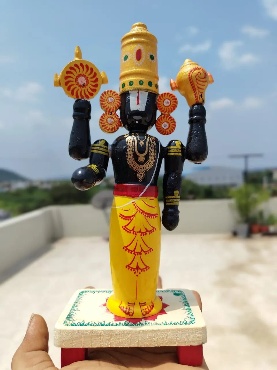 Experience divine blessings with this beautifully handcrafted Etikoppaka wooden idol of Lord Venkateswara — the symbol of wealth, protection, and peace.