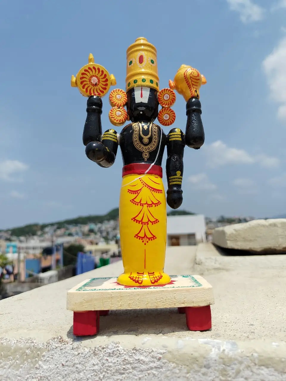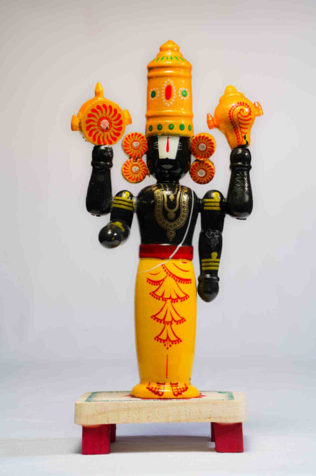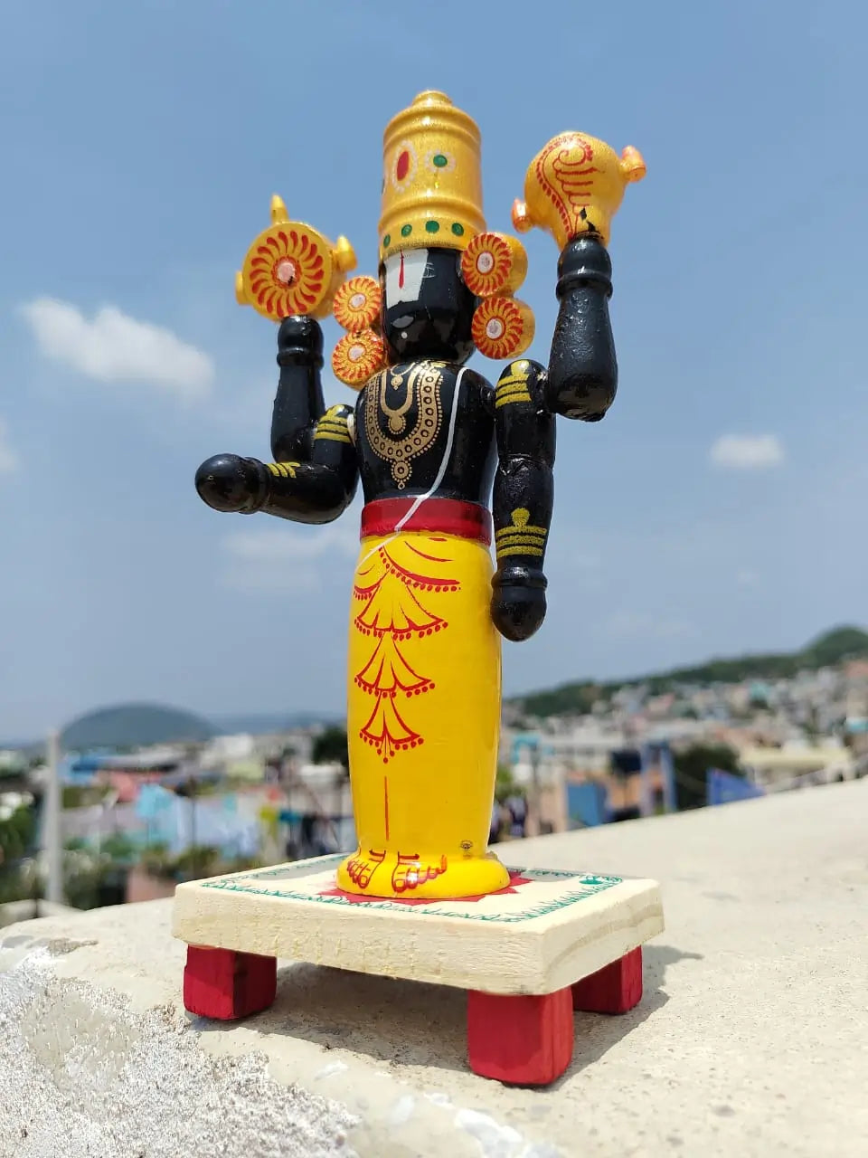 Experience divine blessings with this beautifully handcrafted Etikoppaka wooden idol of Lord Venkateswara — the symbol of wealth, protection, and peace.